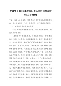 普通党员2025年度组织生活会对照检查材料(五个对照)