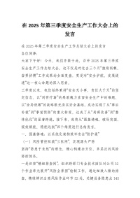 在2025年第三季度安全生产工作大会上的发言