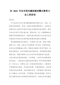 在 2025 年全市党风廉政建设警示教育大会上的讲话