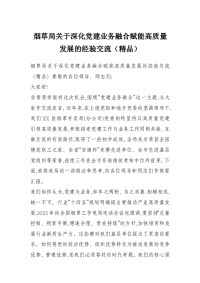 烟草局关于深化党建业务融合赋能高质量发展的经验交流(精品)
