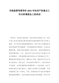 市场监管局领导在2025年知识产权重点工作分析调度会上的讲话