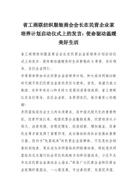 省工商联纺织服装商会会长在民营企业家培养计划启动仪式上的发言:使命驱动温暖美好生活