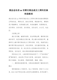商会会长在xx市黄石商会成立三周年庆典欢迎致词