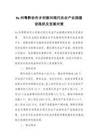 Xx州粤黔协作乡村振兴现代农业产业园建设现状及发展对策