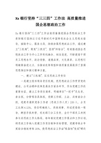 Xx银行坚持“三三四”工作法 高质量推进国企思想政治工作