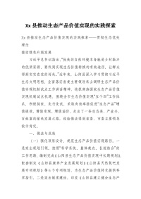 Xx县推动生态产品价值实现的实践探索