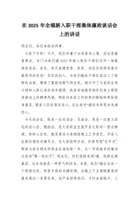 在2025年全镇新入职干部集体廉政谈话会上的讲话