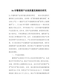 Xx市葡萄酒产业高质量发展路径研究