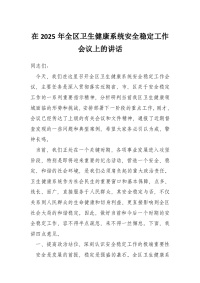 在2025年全区卫生健康系统安全稳定工作会议上的讲话