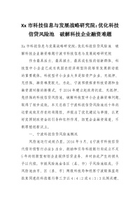 Xx市科技信息与发展战略研究院:优化科技信贷风险池 破解科技企业融资难题