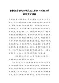 积极探索新兴领域党建工作新机制新方法经验交流材料
