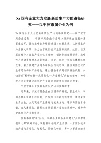 Xx国有企业大力发展新质生产力的路径研究——以宁波市属企业为例