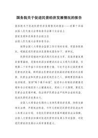 国务院关于促进民营经济发展情况的报告