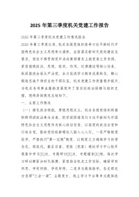 2025年第三季度机关党建工作报告