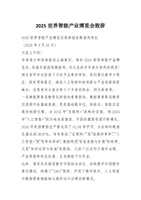 2025世界智能产业博览会致辞