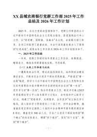 XX县域农商银行党群工作部2025年工作总结及2026年工作计划