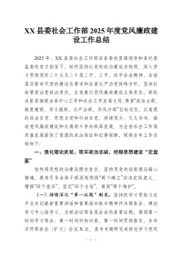XX县委社会工作部2025年度党风廉政建设工作总结