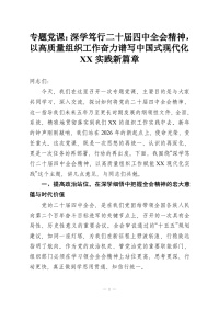 专题党课:深学笃行二十届四中***精神,以高质量组织工作奋力谱写中国式现代化XX实践新篇章
