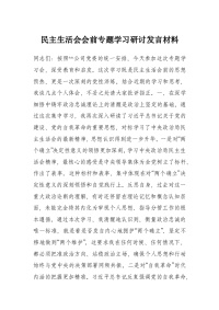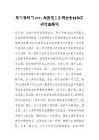 某市直部门2025年度民主生活会会前学习研讨主持词