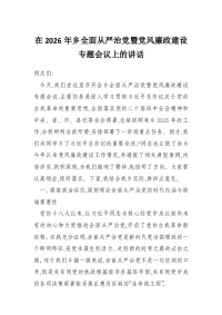 在2026年乡全面从严治党暨党风廉政建设专题会议上的讲话