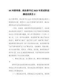 XX州委常委、政法委书记2025年度述职述廉述法报告2