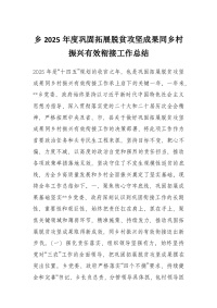 乡2025年度巩固拓展脱贫攻坚成果同乡村振兴有效衔接工作总结