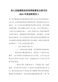县人民检察院经济犯罪检察党支部书记2025年度述职报告1