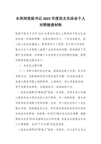 水利局党组书记2025年度民主生活会个人对照检查材料