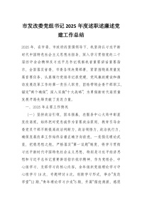 市发改委党组书记2025年度述职述廉述党建工作总结