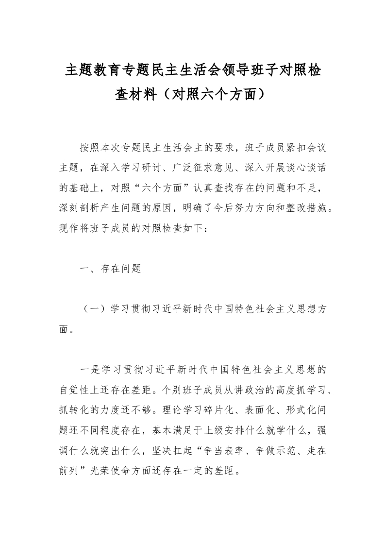 主题教育专题民主生活会领导班子对照检查材料对照六个方面