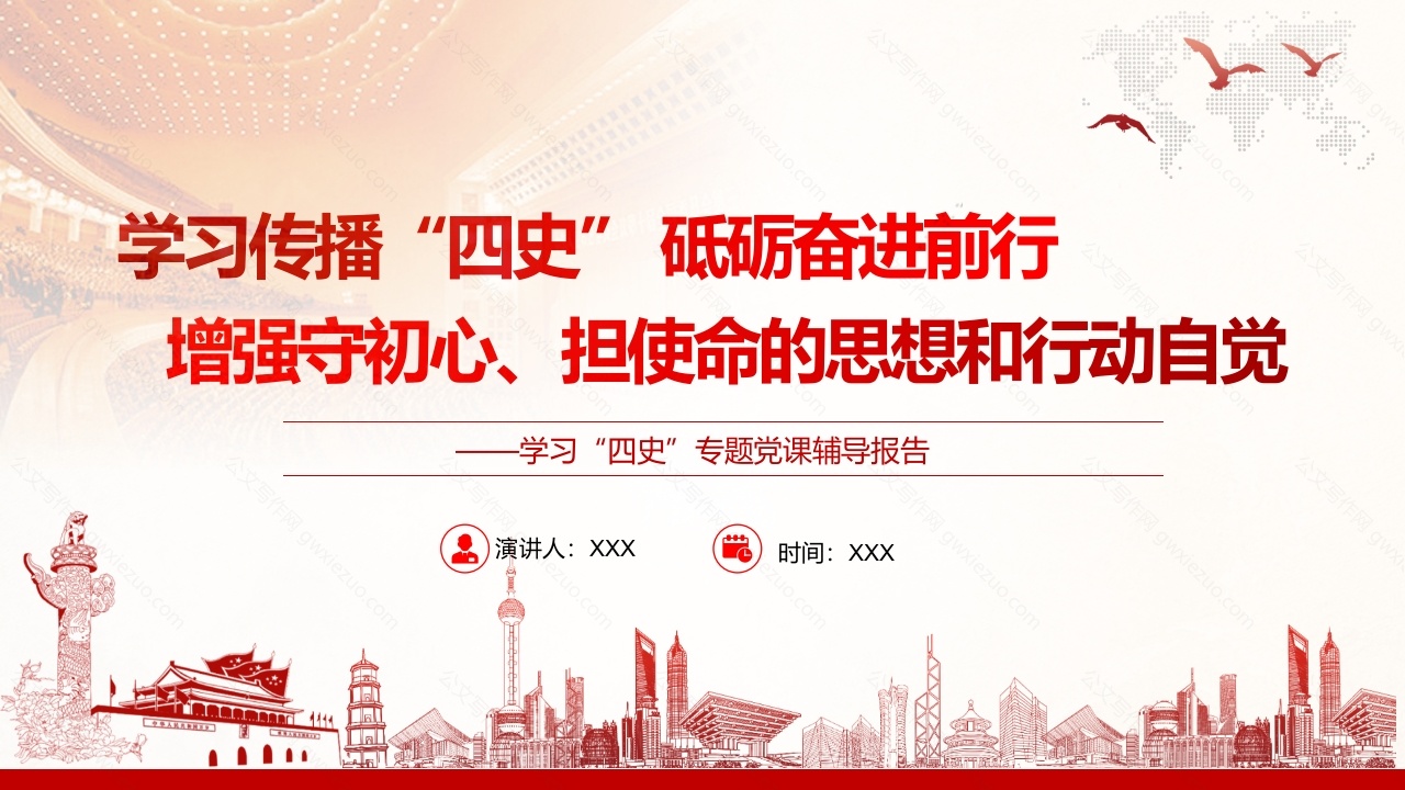 首页PPT模板学习四史专题党课辅导报告PPT