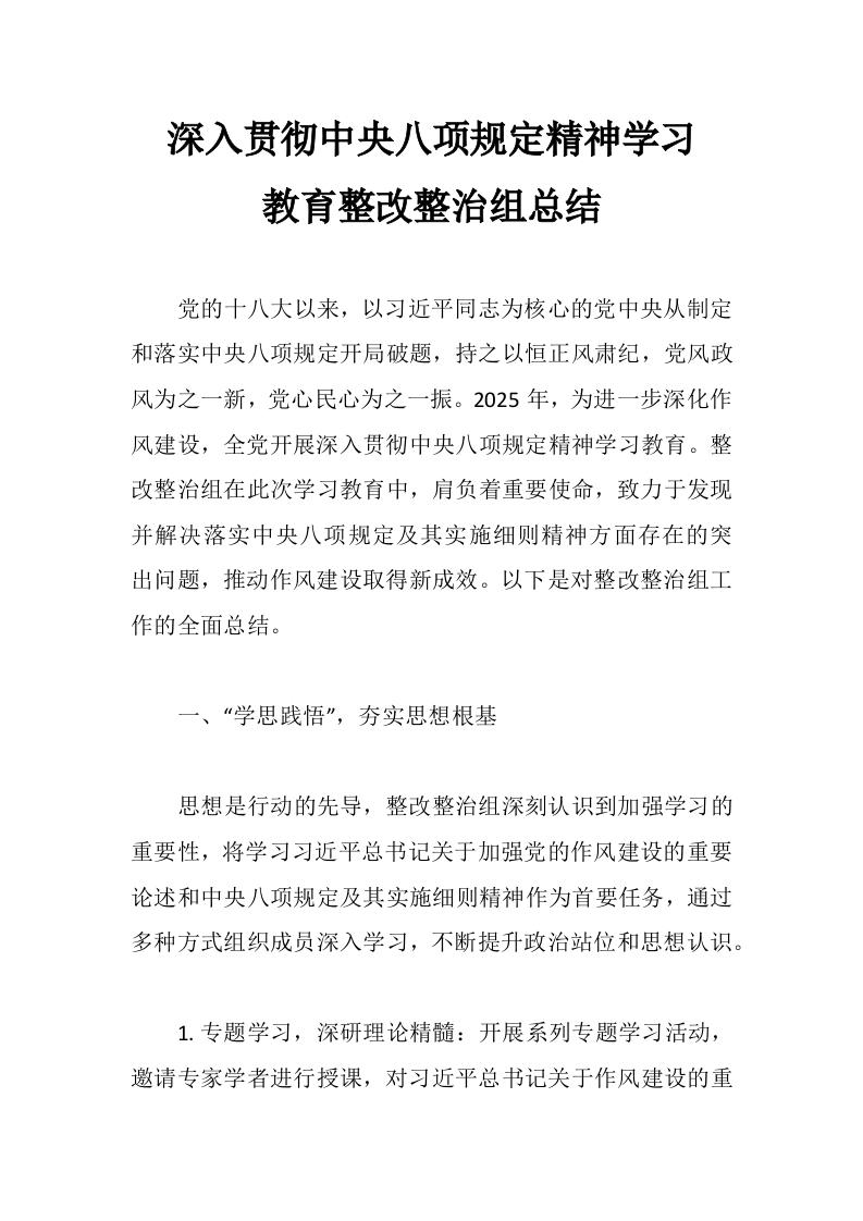 深入贯彻中央八项规定精神学习教育整改整治组总结_副本