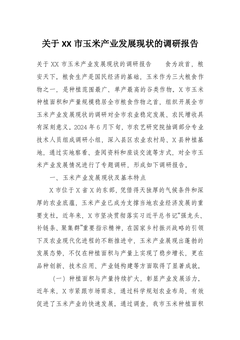 首页材料汇编关于XX市玉米产业发展现状的调研报告