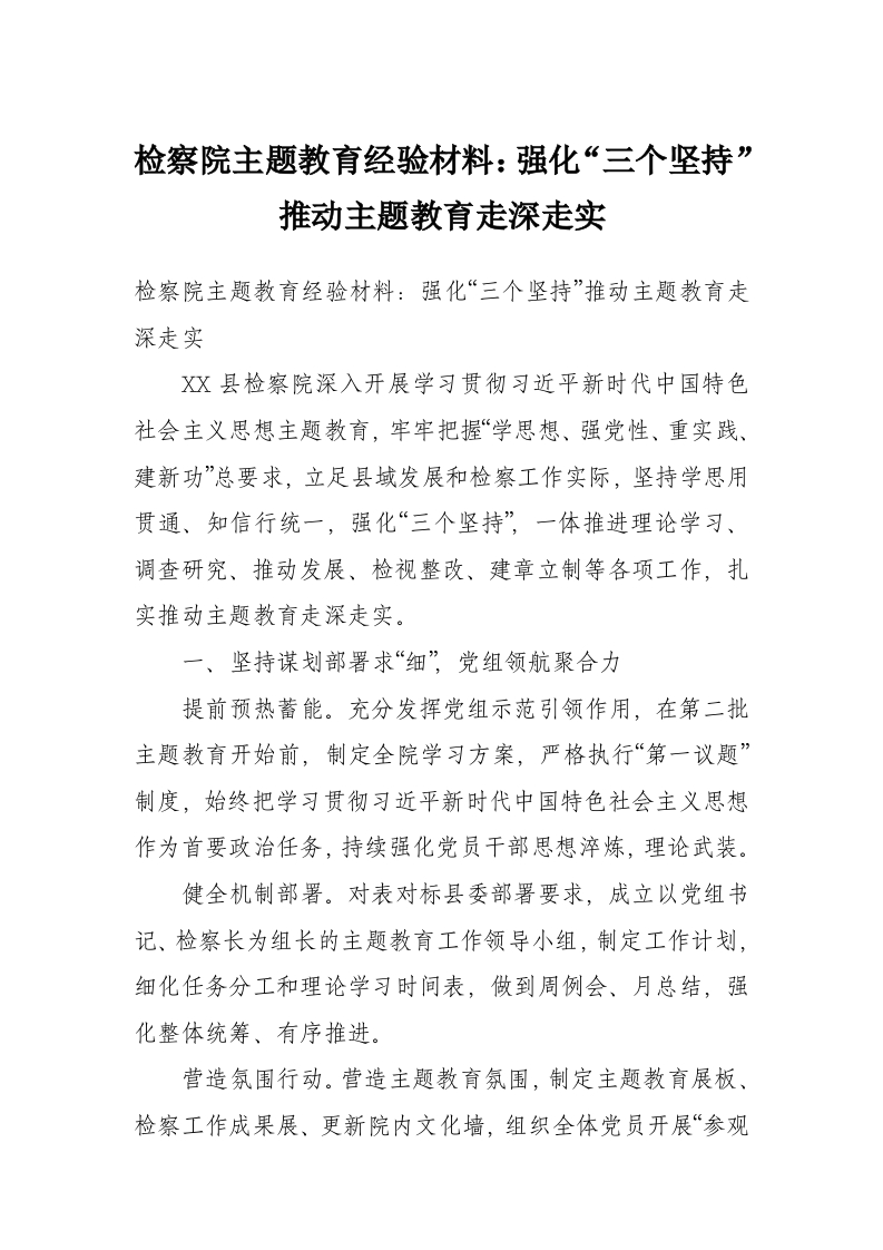 检察院主题教育经验材料:强化“三个坚持”推动主题教育走深走实