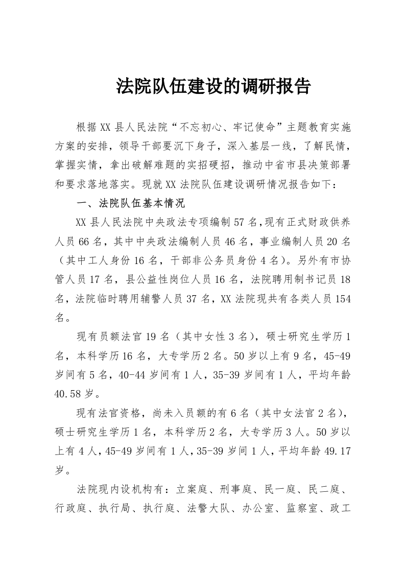 法院队伍建设的调研报告