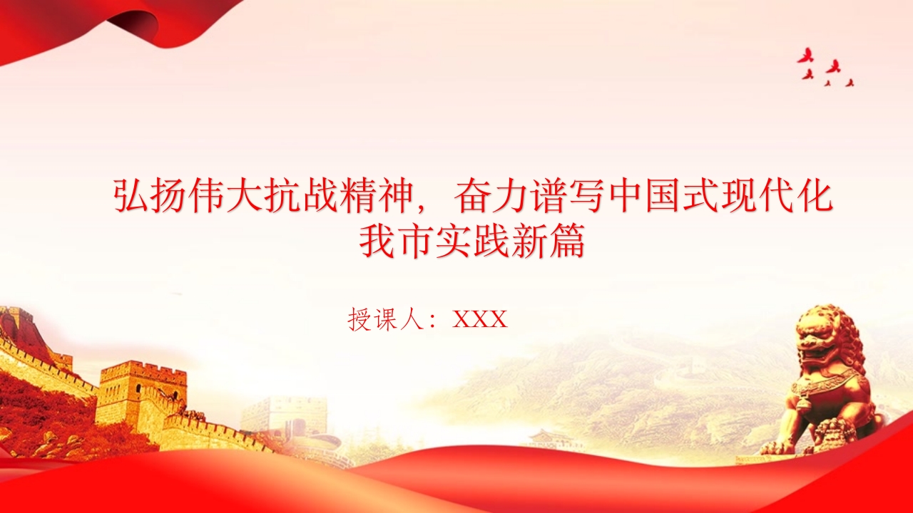 党课PPT:弘扬伟大抗战精神,奋力谱写中国式现代化我市实践新篇