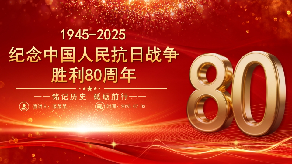 首页PPT模板纪念中国人民抗日战争胜利80周年PPT铭记历史砥砺前行党课