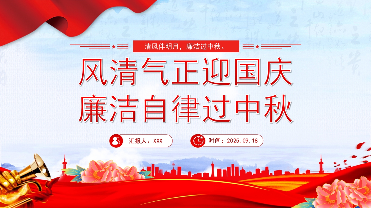 首页PPT模板2025年中秋廉政提醒PPT课件:风清气正迎国庆廉洁自律过中秋(18张)