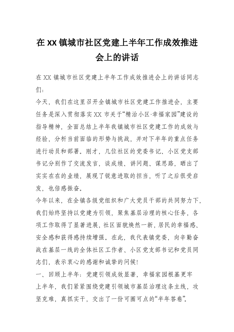 在XX镇城市社区党建上半年工作成效推进会上的讲话