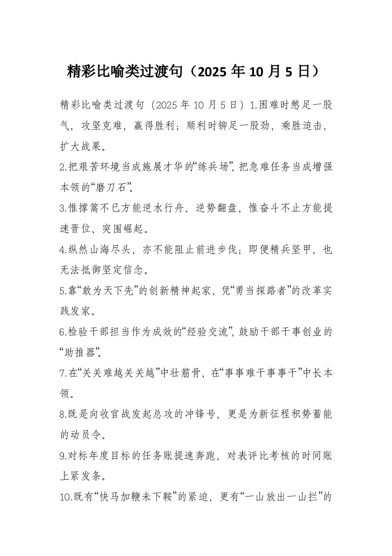首页每日金句精彩比喻类过渡句(2025年10月5日)