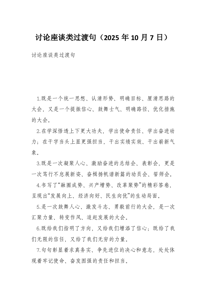 首页每日金句讨论座谈类过渡句(2025年10月7日)