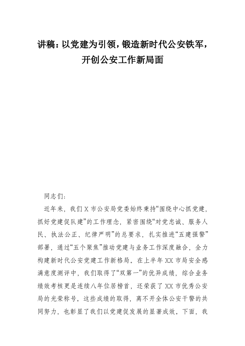 讲稿:以党建为引领,锻造新时代公安铁军,开创公安工作新局面