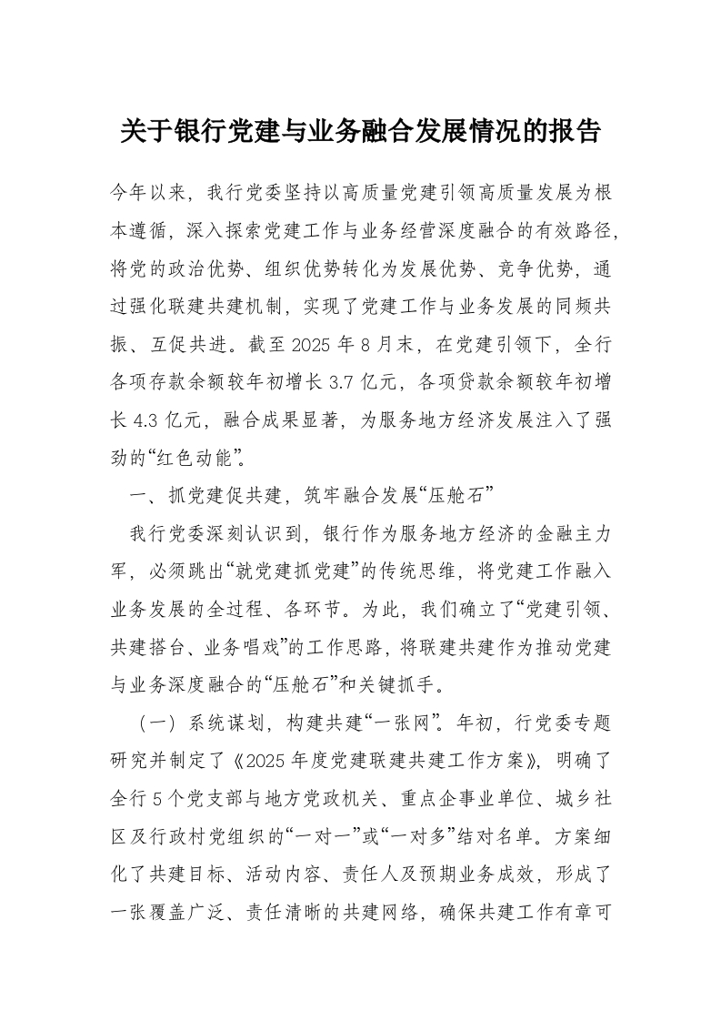 首页写作素材关于银行党建与业务融合发展情况的报告