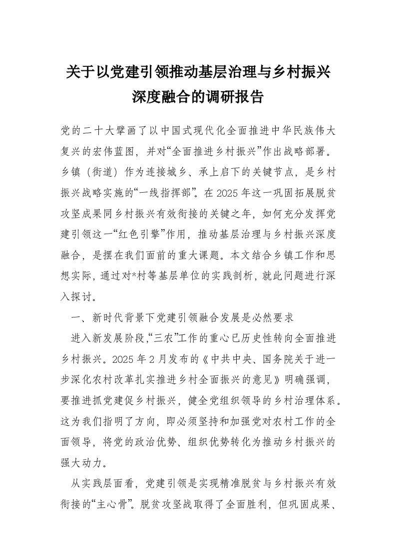 首页写作素材关于以党建引领推动基层治理与乡村振兴深度融合的调研报告
