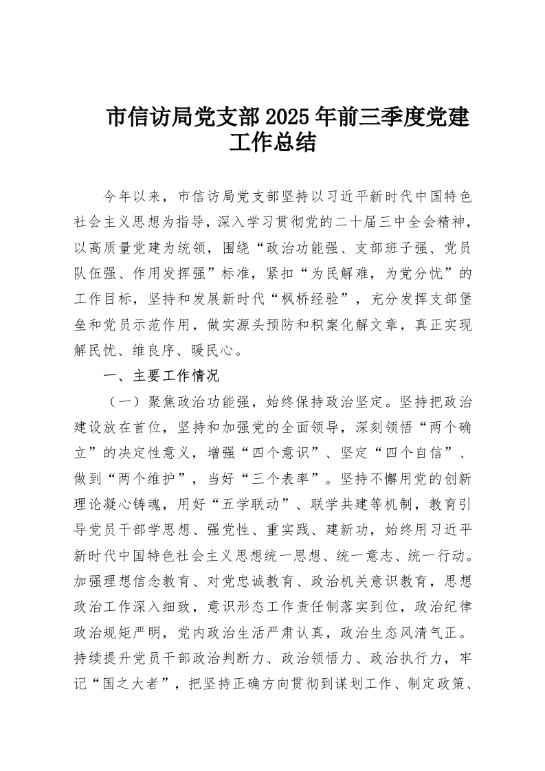 首页精选范文市信访局党支部2025年前三季度党建工作总结