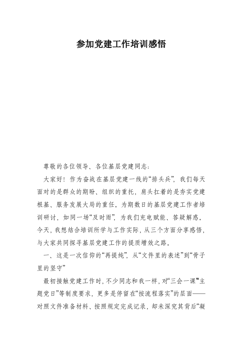 参加党建工作培训感悟