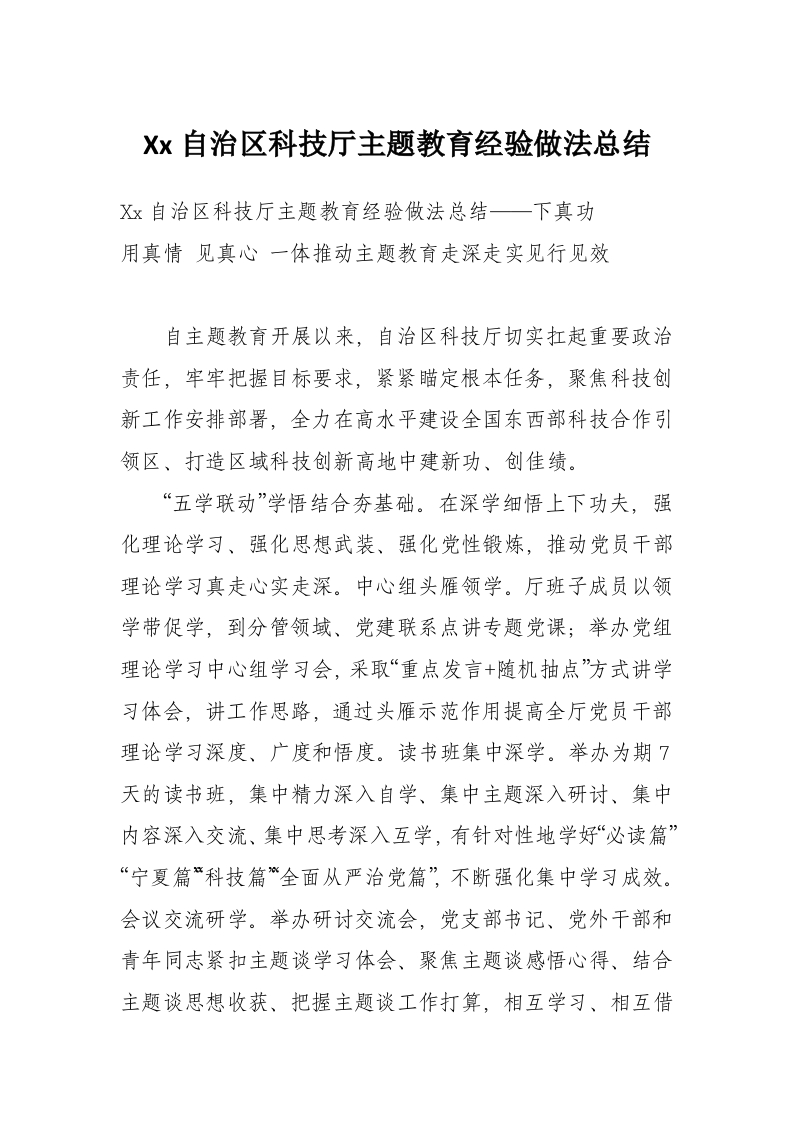 首页写作素材Xx自治区科技厅主题教育经验做法总结