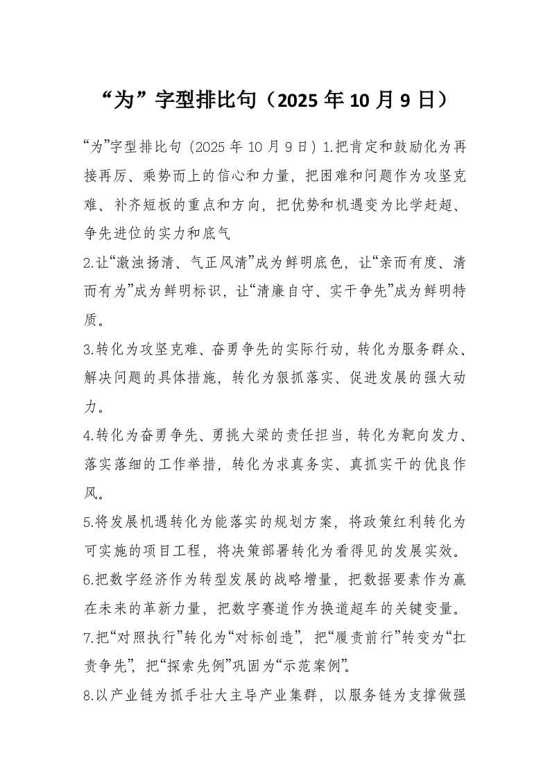 “为”字型排比句(2025年10月9日)