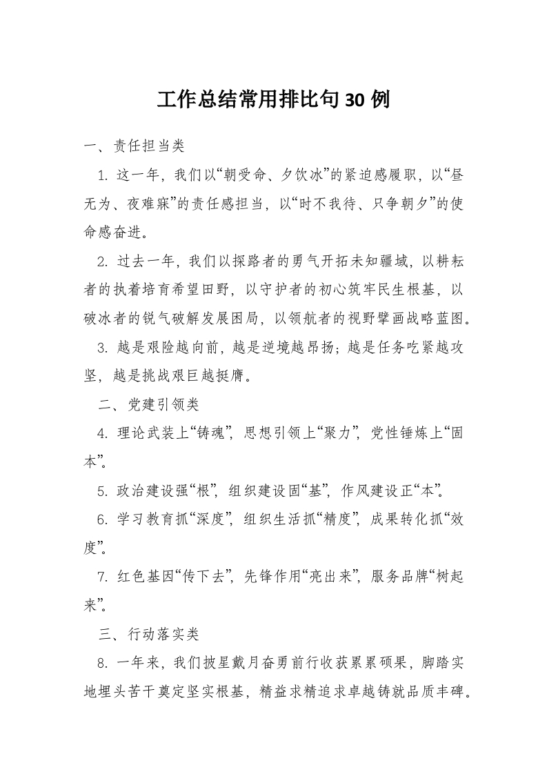 工作总结常用排比句30例