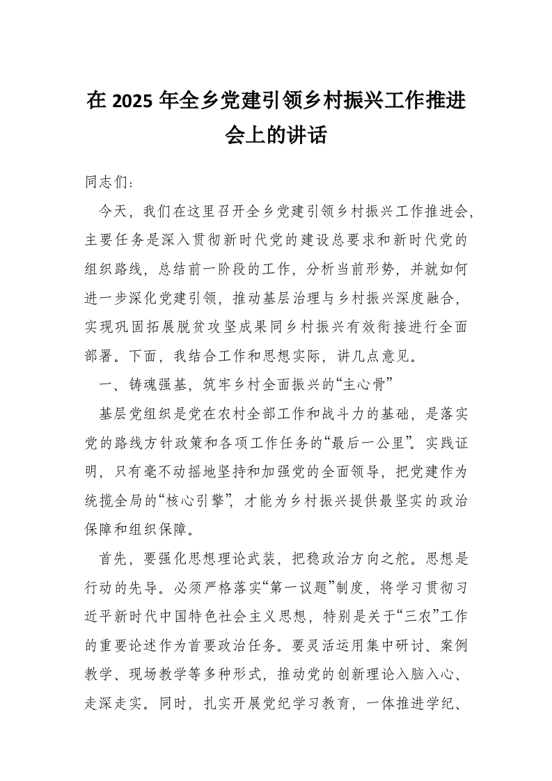 在2025年全乡党建引领乡村振兴工作推进会上的讲话